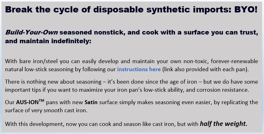 Follow our instructions and you will enjoy a lifetime of cooking with your healthy, natural, non-toxic, forever-renewable nonstick iron: a nonstick you can trust because you've built it yourself!